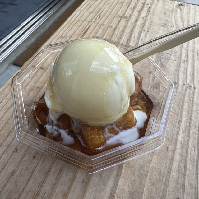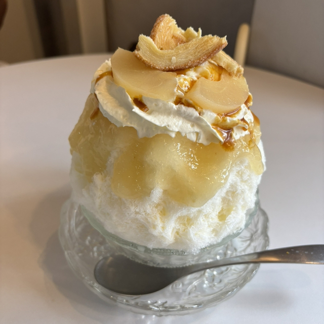 無添加のシフォンケーキやカスタードプリンが定番で、夏には氷蜜が自家製のかき氷も提供されます。ふわっと軽い口当たりが特徴で、子ども連れや年配の方にも人気があります。
